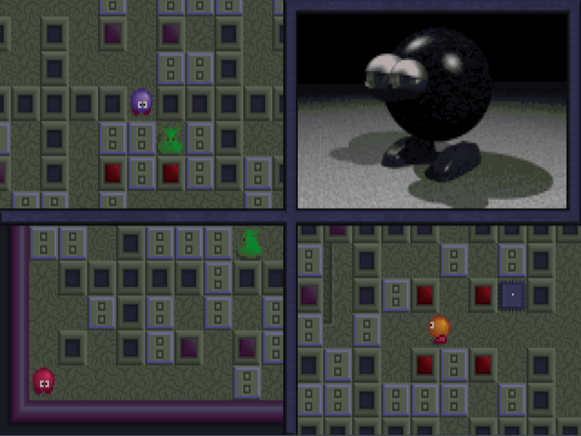 - In Story Mode (singleplayer up to 4 cooperative players), the player(s) has to defeat all the monsters to advance to the next level. There are 8 worlds (with different blocks and monsters) in this game, each World consist of 5 levels and a final Boss. Some worlds have features like a wall that separates the level into two halves or passageways that teleport you to the other end of the map.